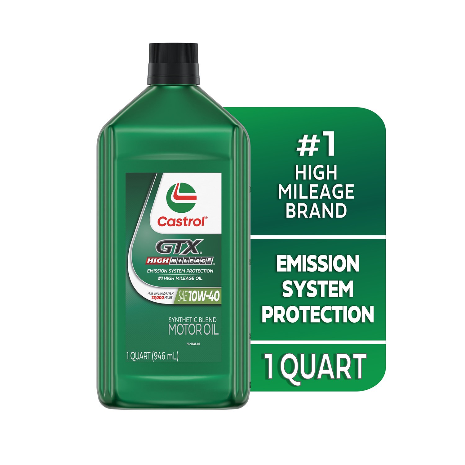 CASTROL GTX High Mileage 10W-40 Synthetic Blend Motor Oil, 1 Quart