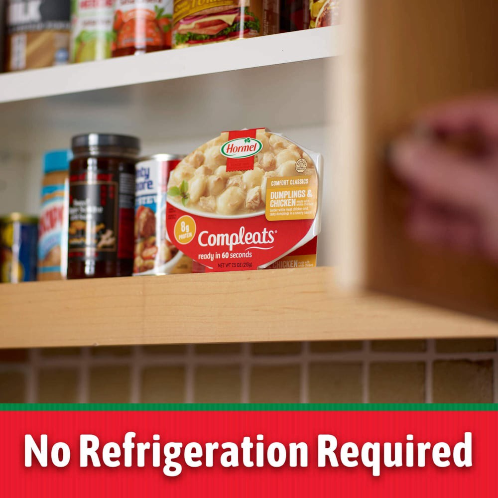 Tender white chicken meat and tasty dumplings in a savory sauce. 8 g protein. No artificial ingredients. Made with white chicken. Ready in 60 seconds. Since 1891. Inspected for wholesomeness by US Dep…