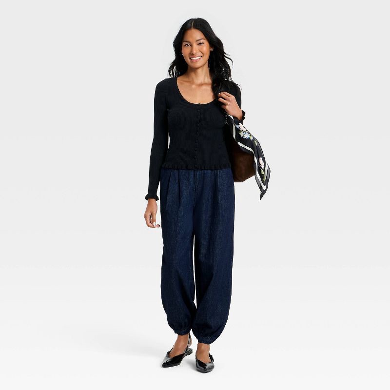 Women's Ruffle Scoop Neck Cardigan - A New Day™ Black XS