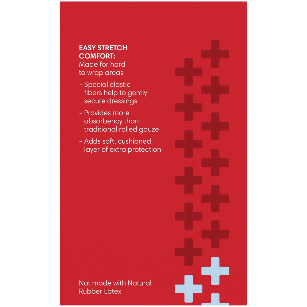 Easy Stretch Comfort.Made for hard to wrap areas.Special elastic fibers help to gently secure dressingsProvides more absorbency than traditional rolled gauzeAdds soft, cushioned layer of extra protect…