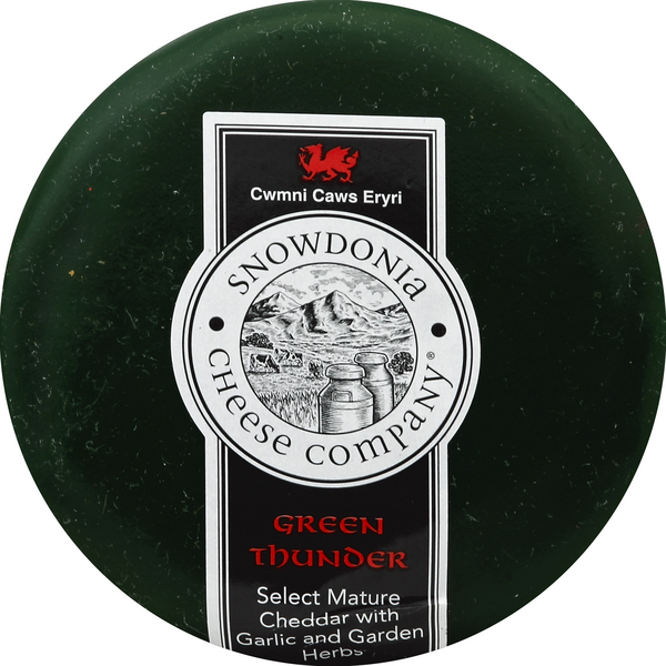 Select mature cheddar with garlic and garden herbs. Suitable for vegetarians. Product of the UK.