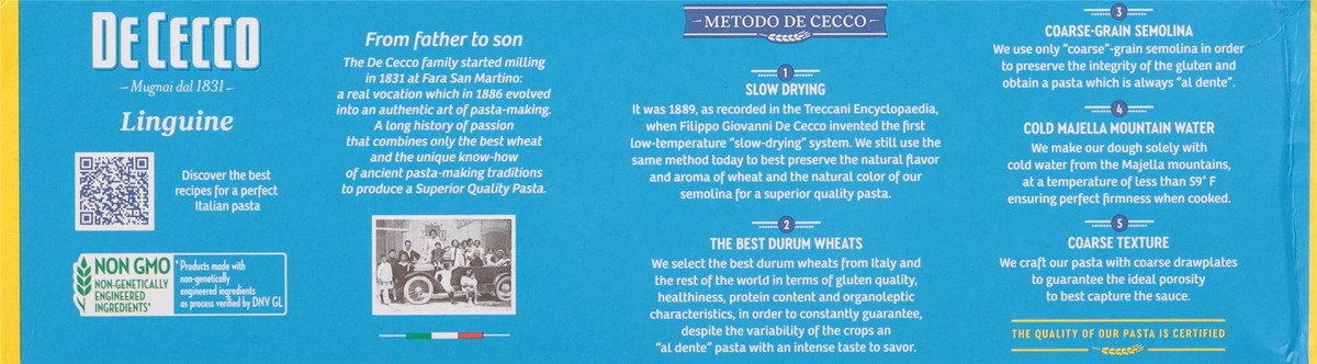 Mugnai dal 1831. Cooking time 12 min. Dried for 18 hours certified. For a superior-quality pasta. From father to son. The De Cecco family started milling in 1831 at Fara San Martino: a real vocation …