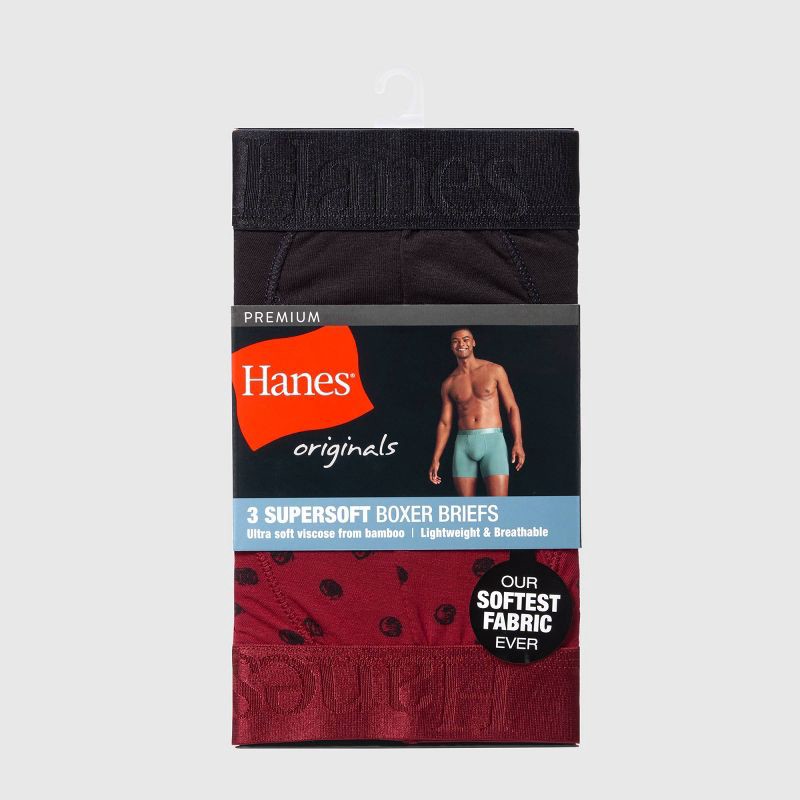 Hanes Premium Hanes Originals Premium SuperSoft Boxer Briefs 3pk - Burgundy/Gray/Black M: Tagless, Moisture Wicking, Stretch Knit Fabric