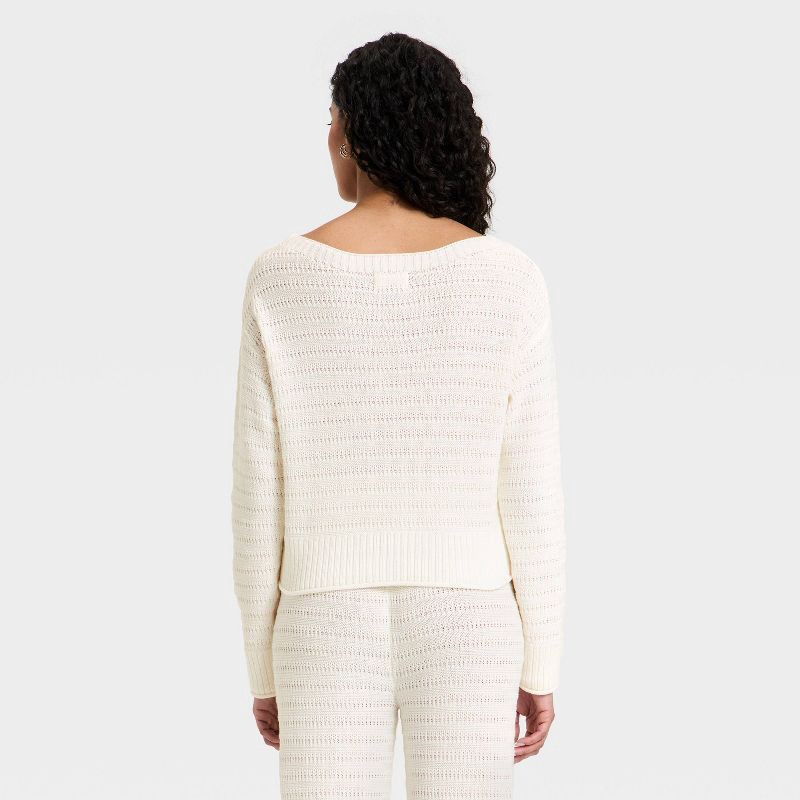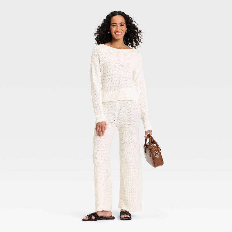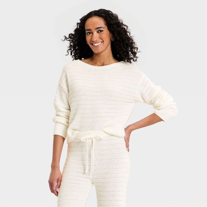 Stay cozy and breezy in the Long-Sleeve Crewneck Pullover Sweater from Universal Thread™. Made with midweight pointelle fabric made from cotton and recycled polyester, this crewneck sweater is the per…