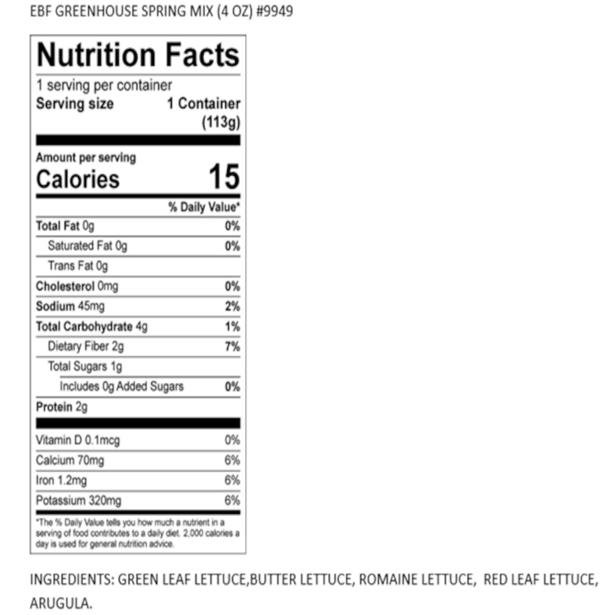 Ingredients: Green Leaf, Red Leaf Lettuces, Romaine, Arugula, Butter Lettuce, Mizuna.Ingredients may vary by season.