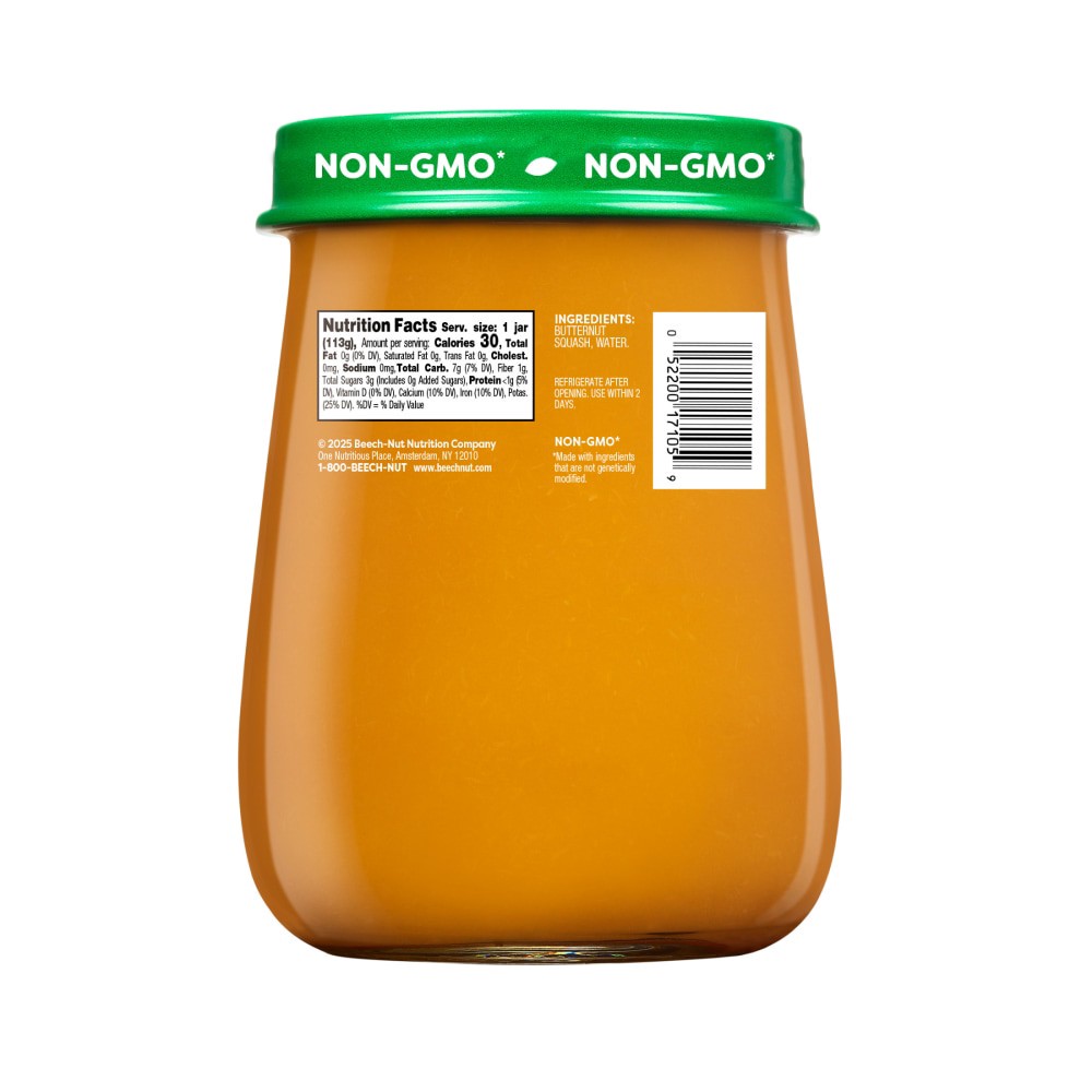 Beech-Nut Naturals Baby Food is made with simple, non-GMO ingredients. Our butternut squash baby food puree has no artificial preservatives, colors or flavors and no added sweeteners--just what you'd …