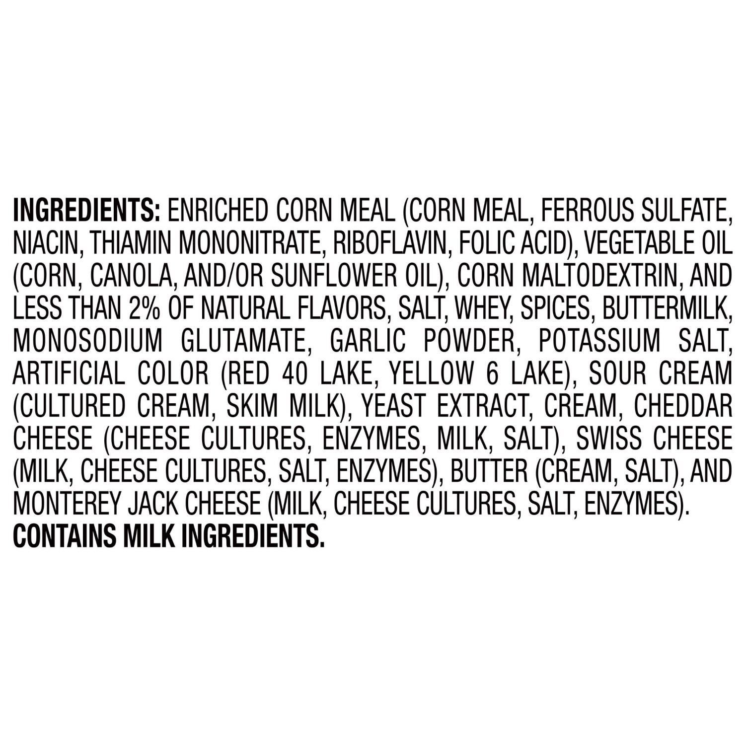 Enriched Corn Meal (Corn Meal, Ferrous Sulfate, Niacin, Thiamin Mononitrate, Riboflavin, Folic Acid), Vegetable Oil (Corn, Canola, and/or Sunflower Oil), Corn Maltodextrin, and Less than 2% of Natural…