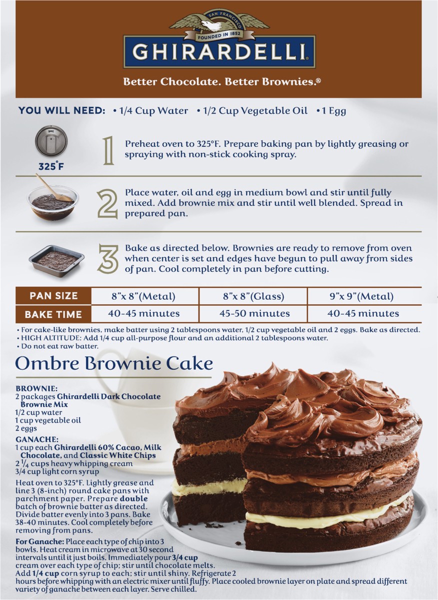 GHIRARDELLI Dark Chocolate Brownie Mix blends rich, moist brownie with melt-in-your-mouth bittersweet chocolate chips to create the perfect easy-to-prepare dessert. The luxuriously deep flavor and smo…