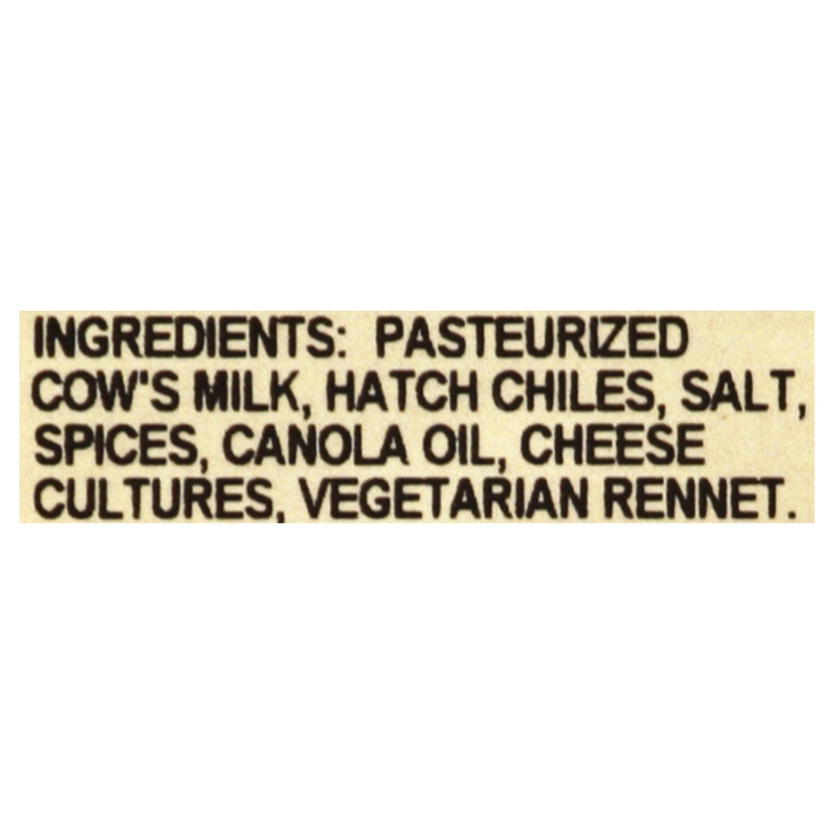 Pasteurized Cow’s Milk, Hatch Chiles, Salt, Spices, Canola Oil, Cheese Cultures, Vegetarian Rennet.