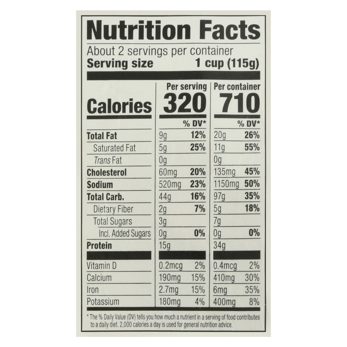 Pasta: Enriched Durum Wheat Semolina (Enriched with Niacin, Ferrous Sulfate, Thiamine Mononitrate, Riboflavin, Folic Acid), Enriched Wheat Flour (Enriched with Niacin, Reduced Iron, Thiamin Mononitrat…