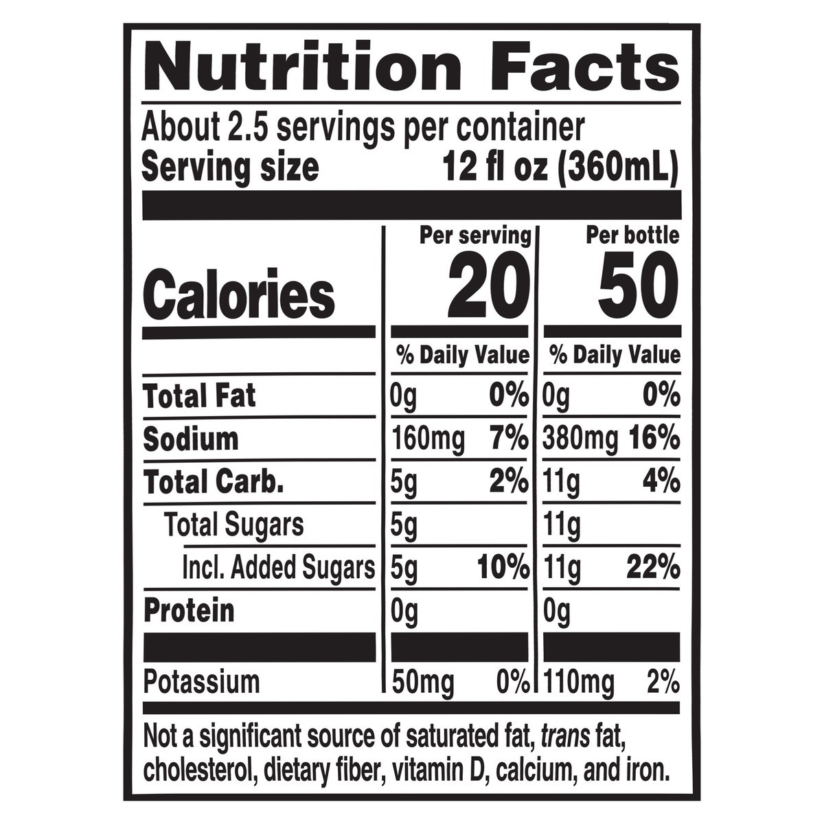 Water, Sugar, Citric Acid, Sodium Citrate, Salt, Monopotassium Phosphate, Purified Stevia Leaf Extract, Modified Food Starch, Vegetable Juice (Color), Natural Flavor, Glycerol Ester of Rosin.