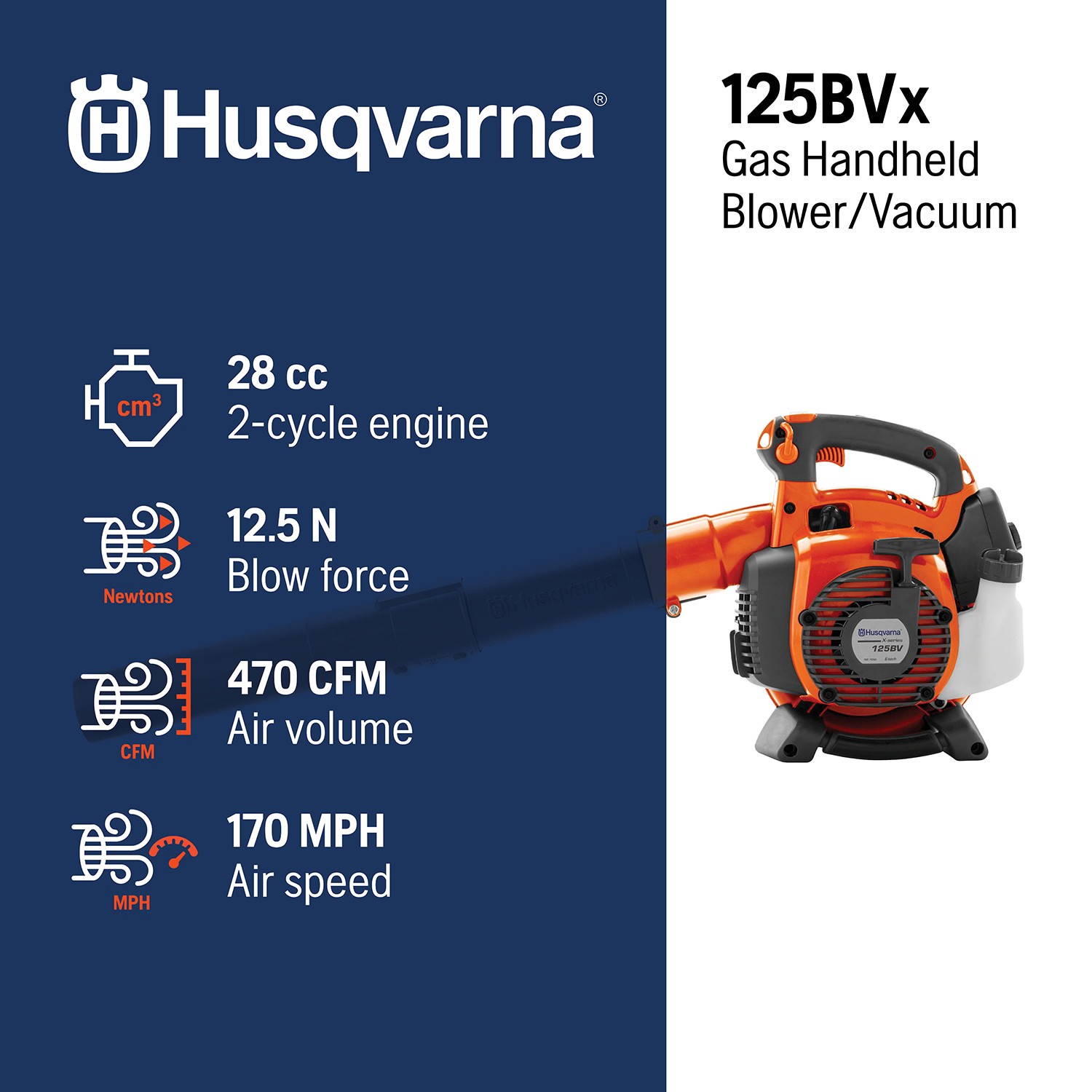Husqvarna 125BVX 28-cc 2-cycle 470-CFM 170-MPH Gas Handheld Leaf Blower