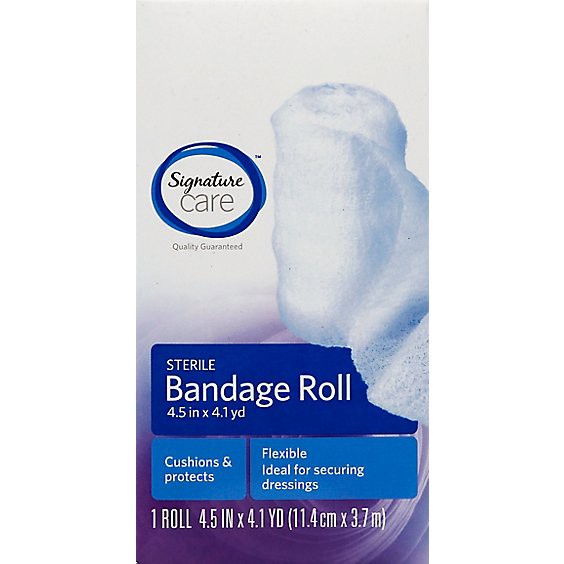 4.5 in x 4.1 yd (11.4 cm x 3.7 m). Sterile. Cushions & protects. Flexible. Ideal for securing dressings. Quality guaranteed. Signature Care Bandage Roll is perfect for wrapping and securing hard-to-ba…