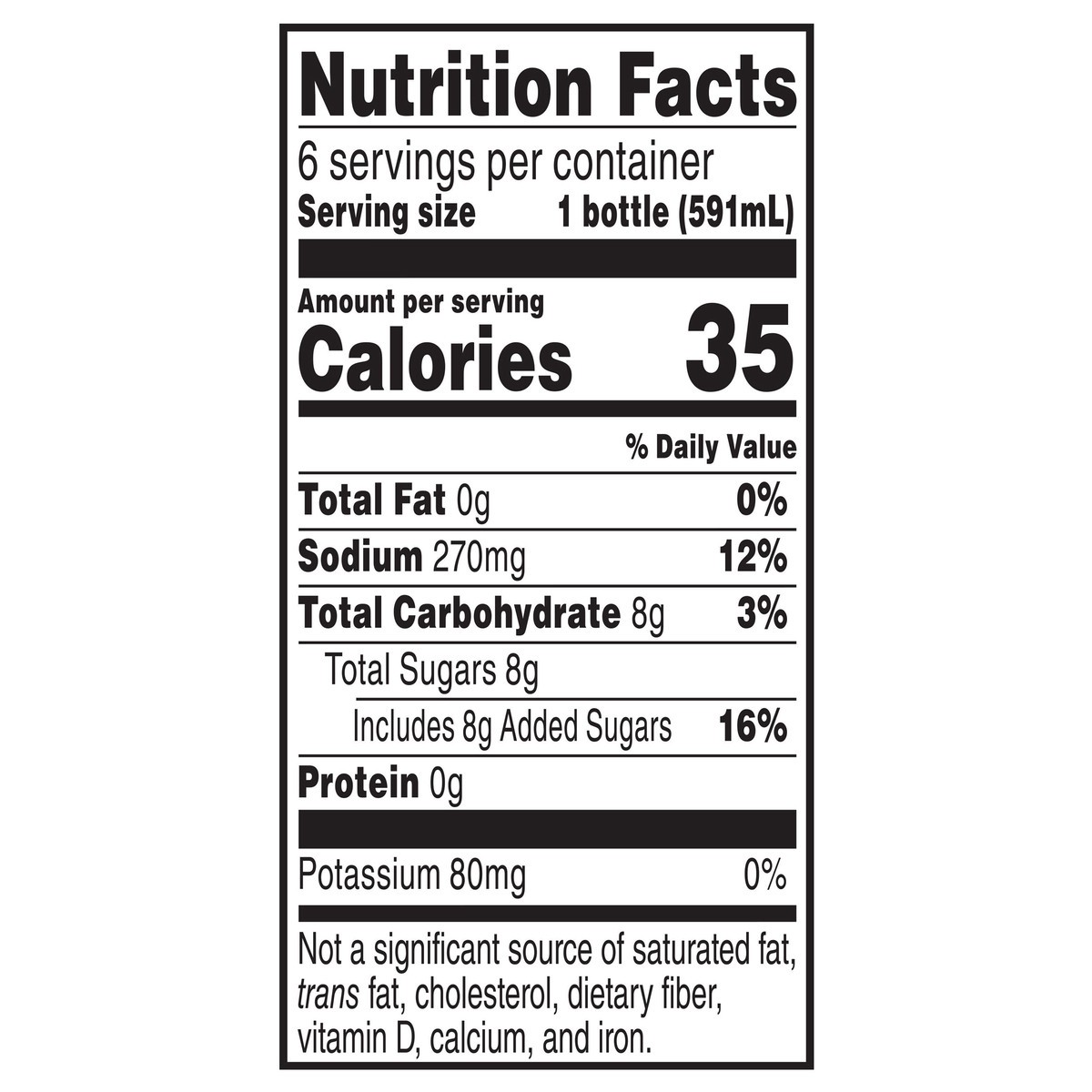 Water, Sugar, Citric Acid, Sodium Citrate, Salt, Natural Flavor, Monopotassium Phosphate, Purified Stevia Leaf Extract, Vegetable Juice (Color), Modified Food Starch, Glycerol Ester of Rosin.