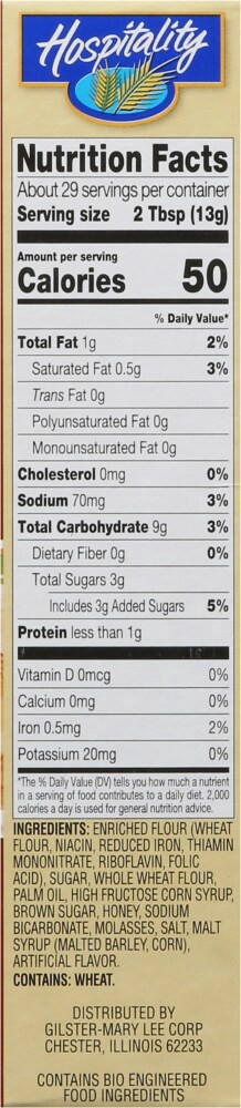 Enriched Flour (Wheat Flour, Niacin, Reduced Iron, Thiamin Mononitrate, Riboflavin, Folic Acid), Sugar, Whole Wheat Flour, Palm Oil, High Fructose Corn Syrup, Brown Sugar, Honey, Sodium Bicarbonate, M…