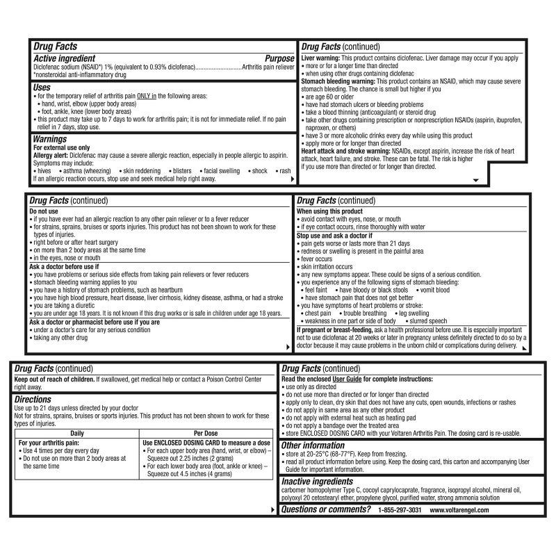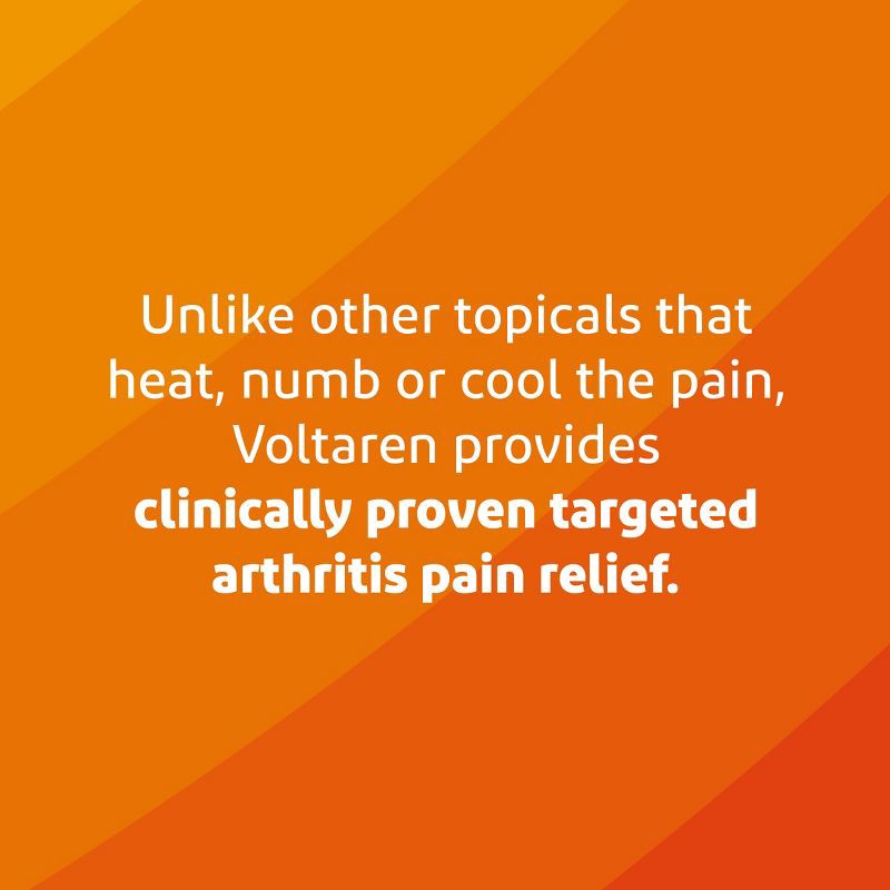 - One 5.3 oz/150 g tube of Voltaren Topical Arthritis Pain Gel#1 DOCTOR RECOMMENDED topical pain relief brandCLINICALLY PROVEN to relieve arthritis pain, improve mobility and reduce stiffnessAN ALTERNATIVE TO PILLS, Voltaren is a nonsteroidal anti-inflammatory gelVOLTAREN ARTHRITIS PAIN GEL PENETRATES DEEP to attack arthritis pain at the sourceHSA and FSA eligible item. Medicare Advantage OTC (MAOTC) eligible. *OTC benefits and eligible products vary by plan. Check your plan for specific details.