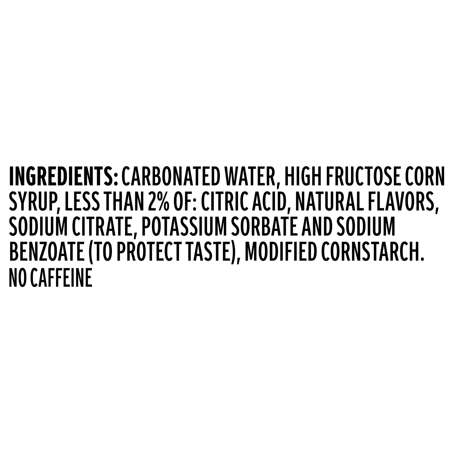 Carbonated Water, High Fructose Corn Syrup, Less Than 2% Of: Citric Acid, Natural Flavors, Sodium Citrate, Potassium Sorbate And Sodium Benzoate (To Protect Taste), Modified Cornstarch.