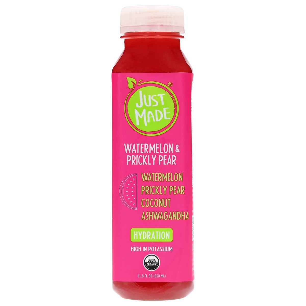 Cold pressured. This Bottle Contains: 1/4 watermelon. 2 prickly pears. 1/8 teaspoon ashwagandha. 1/8 teaspoon cordyceps. Just made. Made justly. Proud to partner with HelpCureHD. Rinse. Remove cap & r…