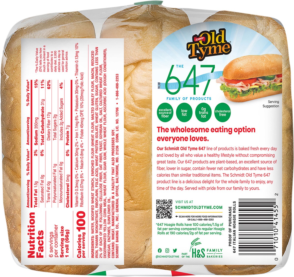 Schmidt's Old Tyme 647 Italian Hoagie Rolls - 6 Rolls
