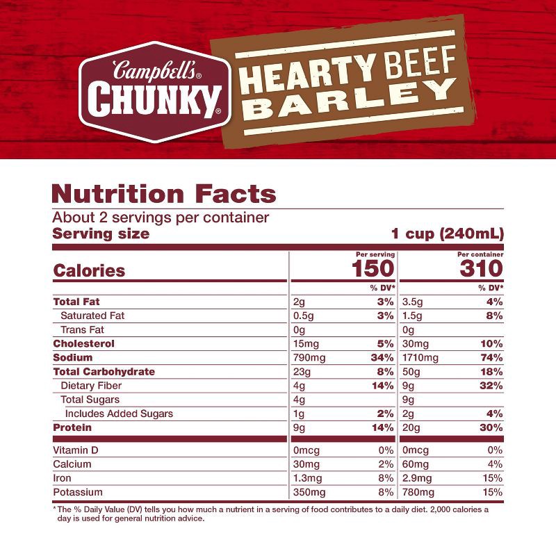 - Big Flavors: Canned soup with savory beef, carrots and potatoes that come together with toasted barley in a delicious fireside favorite