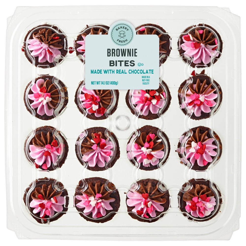 Bakery Fresh Goodness Valentine's Pink And Chocolate Icing Mini Brownies Party Platter