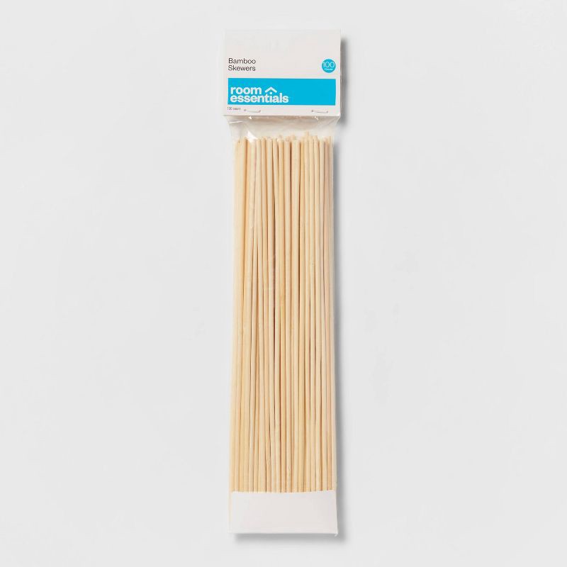 Grill vegetables, meats, make kebabs or appetizers with these 100-Count Bamboo Skewers from Room Essentials. Made from bamboo, these skewers feature a sharpened edge for easily piercing, holding or ad…