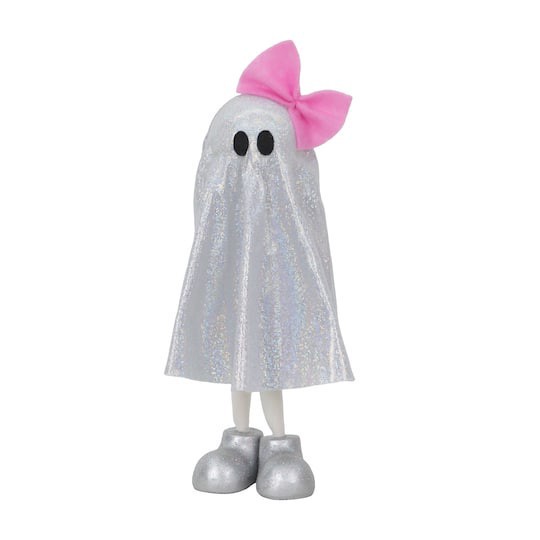 Find the 10.5" Standing Fabric Glitter Ghost with Bow Tabletop Decor by Ashland at Michaels. All done up with a pink bow, this friendly spirit features a shimmery fabric body with matching chunky snea…