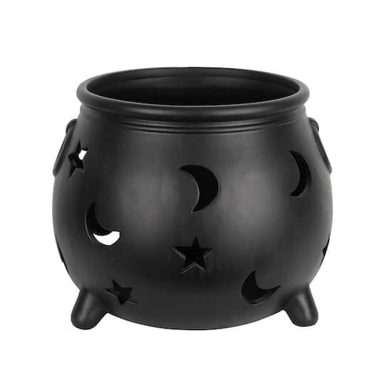 10.75" Black Moon & Stars Cauldron Ceramic Candle Holder By Ashland