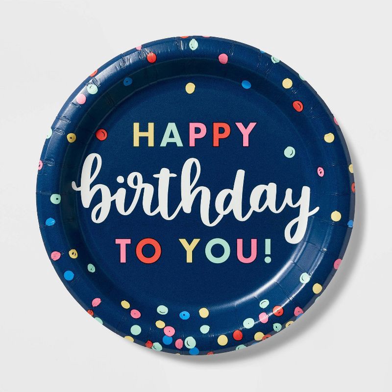 Celebrate your kid's next birthday in style with the 10-Count of Everyday Happy Birthday Dinner Paper Plates from Spritz. These round paper birthday plates feature a navy background with allover color…