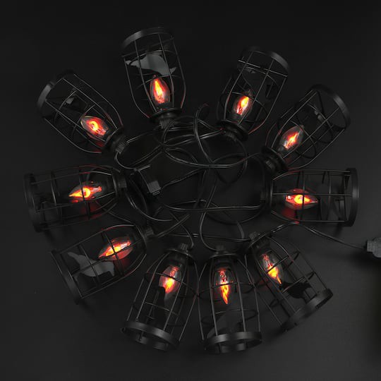 10ct. Orange Flickering Caged Raven String Lights By Ashland