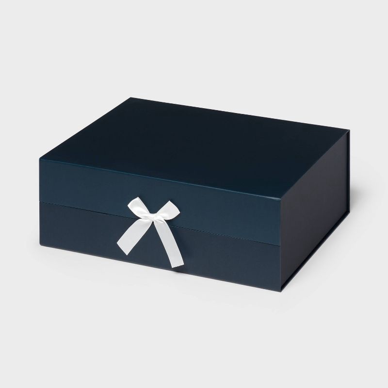 Pack your heartfelt gifts in a stylish 10"x13"x4.5" Gift Box with Bow Navy - Spritz™. This durable paperboard box brings an elegant touch to any occasion, be it Easter, Father's Day or a special celeb…