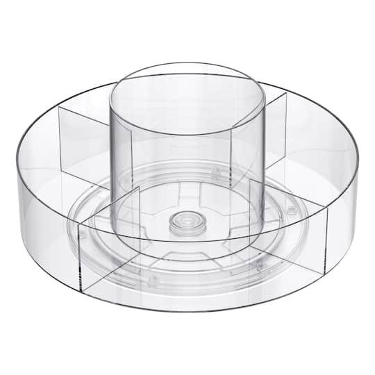 Find the 11" Clear Rotating Storage Tray by Simply Tidy at Michaels. It's handy circular design features four outer compartments and a taller cylindrical one in the middle, perfect for accessing items…