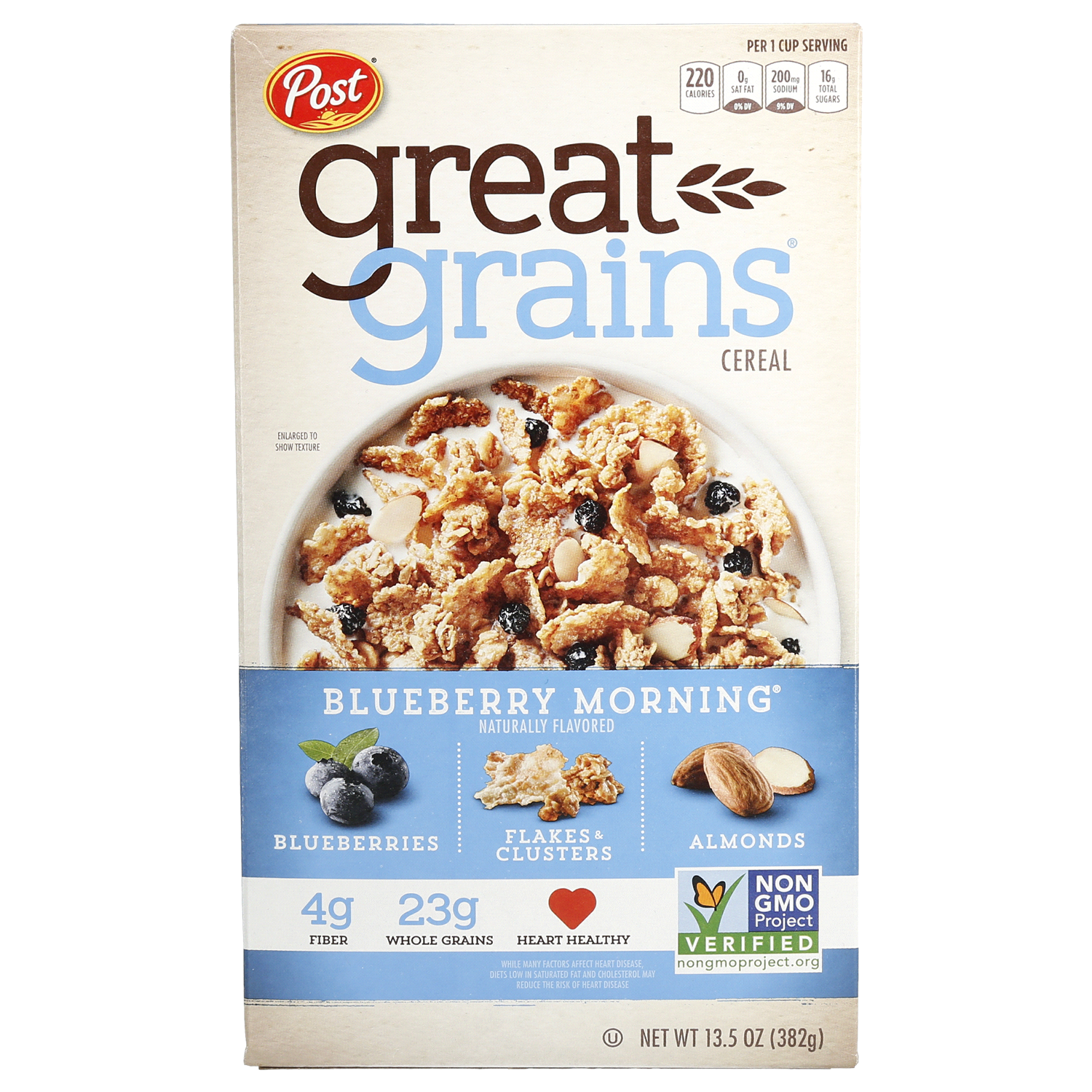 Start your morning with an exciting crunch with Great Grains Blueberry Nut Crunch Blueberry Cereal. Featuring crunchy granola clusters and crispy cereal flakes, this blueberry cereal is made with whol…