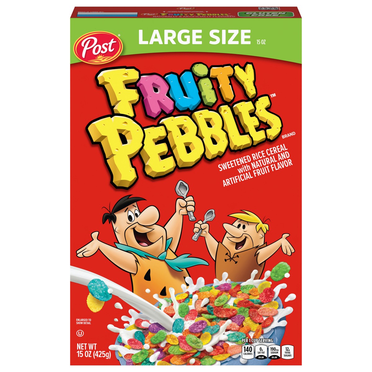Celebrate creativity and enjoy fruity Yabba Dabba Doo deliciousness with every bowl of Post Fruity PEBBLES Kids Cereal. These colorful gluten free cereal pieces spark joy at breakfast time for kids an…