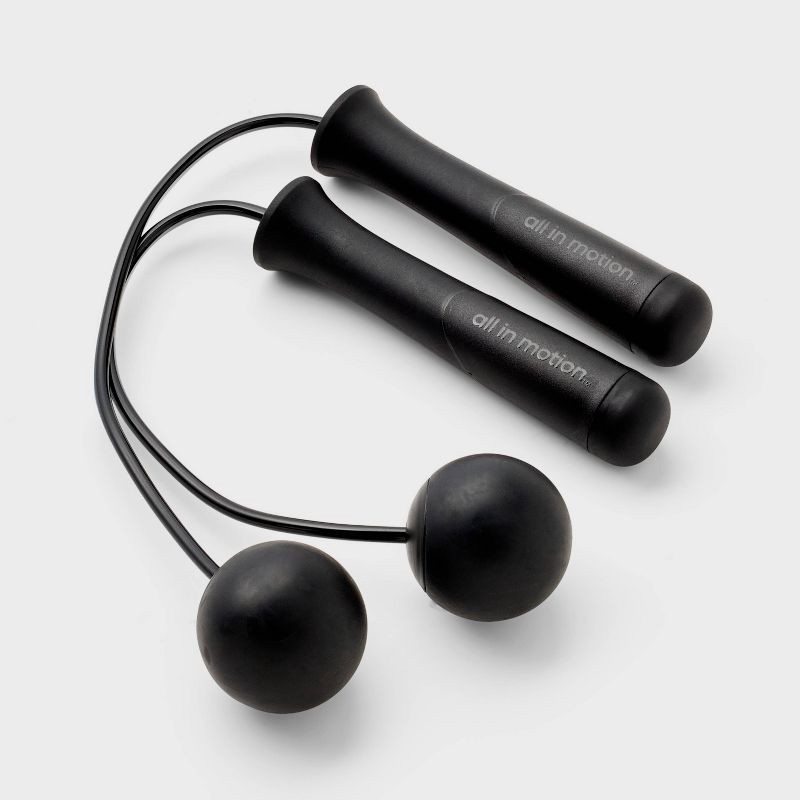 - Must-have features: black color, plastic handles with weighted balls, ropeless design