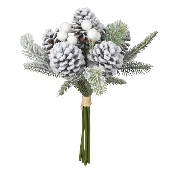 Buy the 12" Snowy Pine & Pinecone Bouquet by Ashland at Michaels. Featuring pine branches and pinecones covered in snow, place in a vase with a few peppermint stems to invite the spirit of Christmas i…