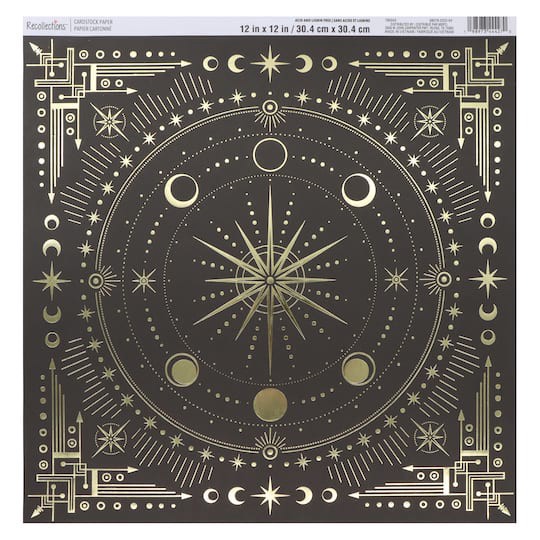 Buy the 12" x 12" Black & Gold Celestial Cardstock Paper by Recollections at Michaels. This celestial cardstock paper features a black background with a gorgeous gold foil design that expands across t…