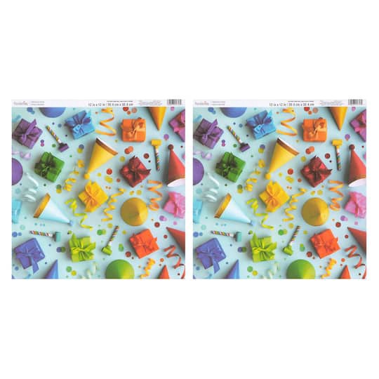 Get the 12" x 12" Double-Sided Photo-Real Party Cardstock Paper by Recollections at Michaels. This photo-real party cardstock paper features two sides with a rainbow present and party hat design on on…