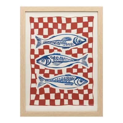 Buy the 12" x 16" Blue Fish Framed Wall Decor by Ashland at Michaels. Featuring an image of three blue fish over a white and red checker background, this accent will be right at home hanging near your…
