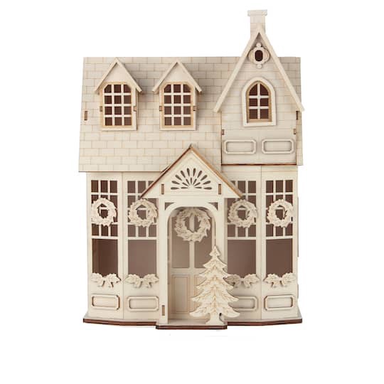 12.25" Unfinished Village House Diy Led Wood Decor By Make Market