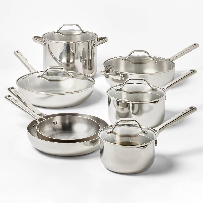 Includes: 10" frying pan, 12" Frying Pan With Lid, 5 Quart Saute Pan With Lid, 8 Quart Stockpot With Lid, 8" Frying Pan, 1.5 Quart Saucepan With Lid, 3 Quart Saucepan With Lid