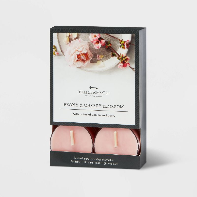 12pk Tealight Candles Peony and Cherry Blossom Pink - Threshold™: Scented, Spring Decor, 4hr Burn Time