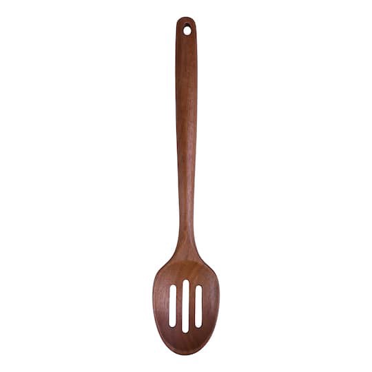 Find the 13" Acacia Wood Slotted Spoon by Makery at Michaels. Made from acacia wood with a hole on the end for hanging storage, this spoon is great for a wide variety of cooking and serving uses. Natu…