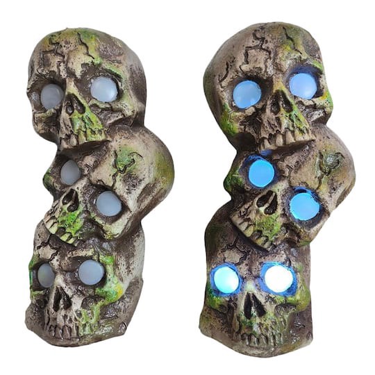 Buy the 13.5" Gray LED Stacked Skulls Decor by Ashland at Michaels. Featuring an LED light and ghost howling sounds, this piece will be right at home with spooky trees, a black cat figurine and lots o…