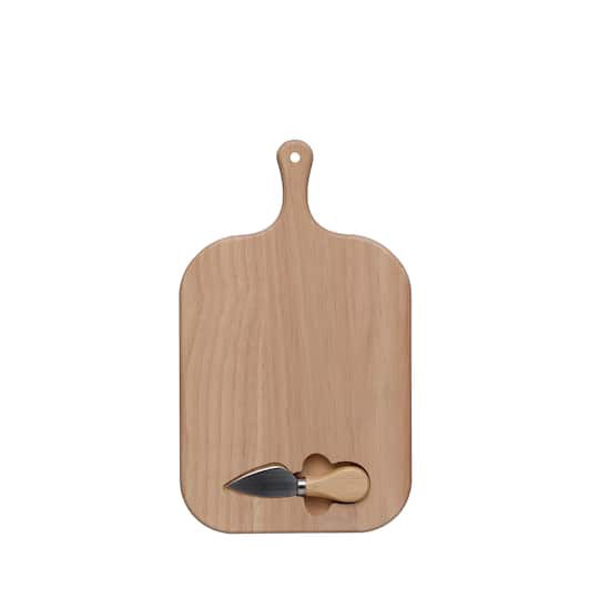 13.75" Natural Rectangular Wood Cheese Board With Knife By Ashland