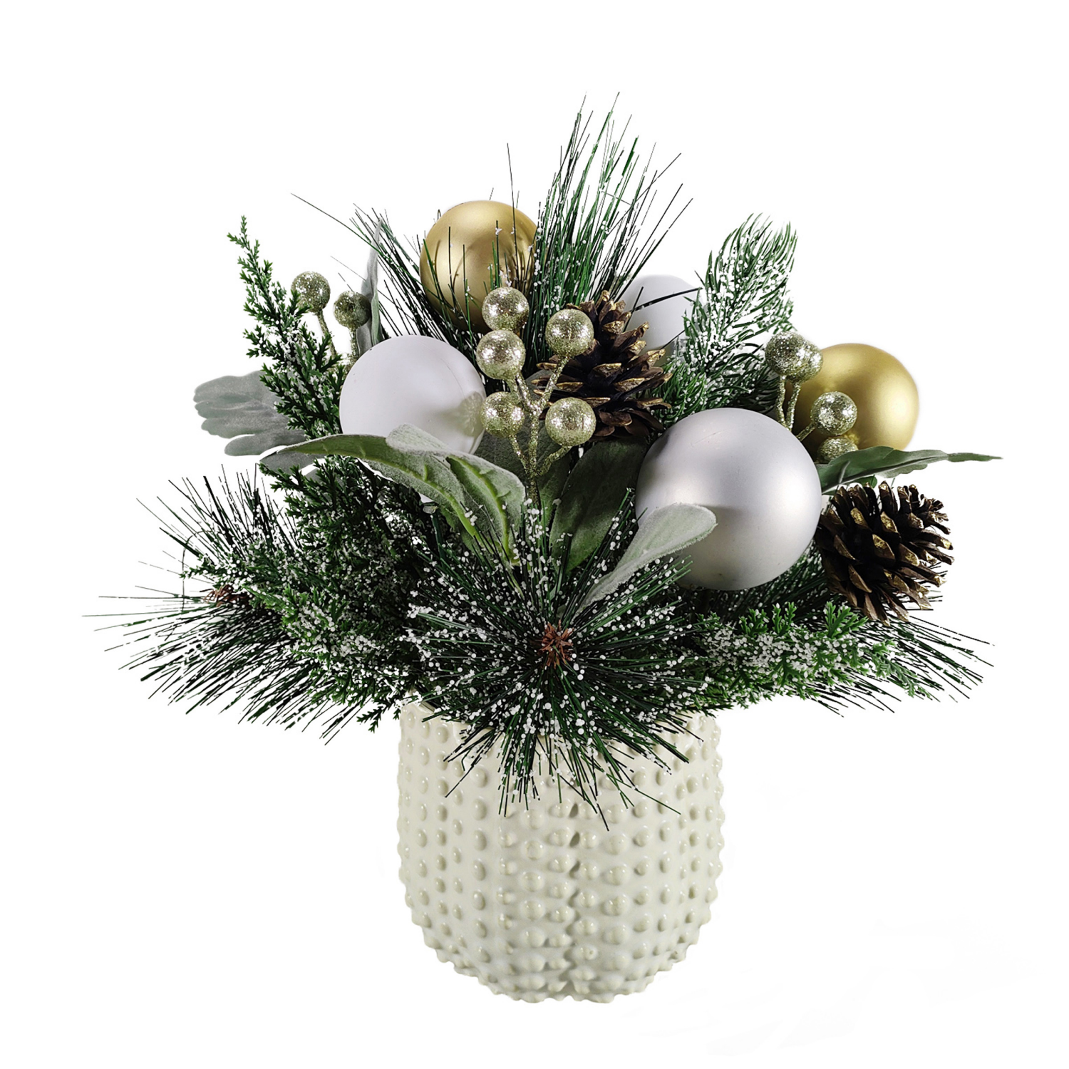 13Inch Ball Glitter Berry Pine In Pot Silver Gold Green