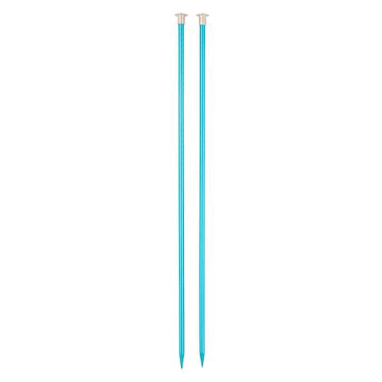 Designed for flat knitting with concave points to help prevent dropped stitches and splitting yarn. 14" (35 cm). Available in assorted sizes. 14" Anodized Aluminum Knitting Needles by Loops & Threads