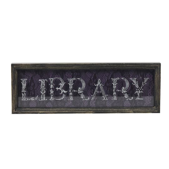 Find the 14" Framed Scrollwork & Snakeskin Library Tabletop Sign by Ashland at Michaels. The word "Library" is spelled out in scrollwork on a purple snakeskin backdrop in this spectral piece set in a …