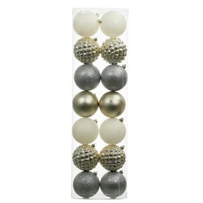 Purchase the 14 Pack 4" Gold & Silver Glitter & Starburst Shatterproof Ball Ornaments by Ashland at Michaels. Featuring a variety of finishes and styles in gold and silver, these eye-catching orbs wil…