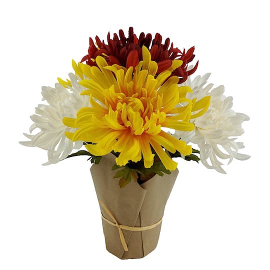 Buy the 14" Potted Mum by Ashland at Michaels. This potted floral arrangement features a gorgeous array of mums wrapped in paper. You can put this lovely arrangement on a shelf, table or mantel alongsā¦